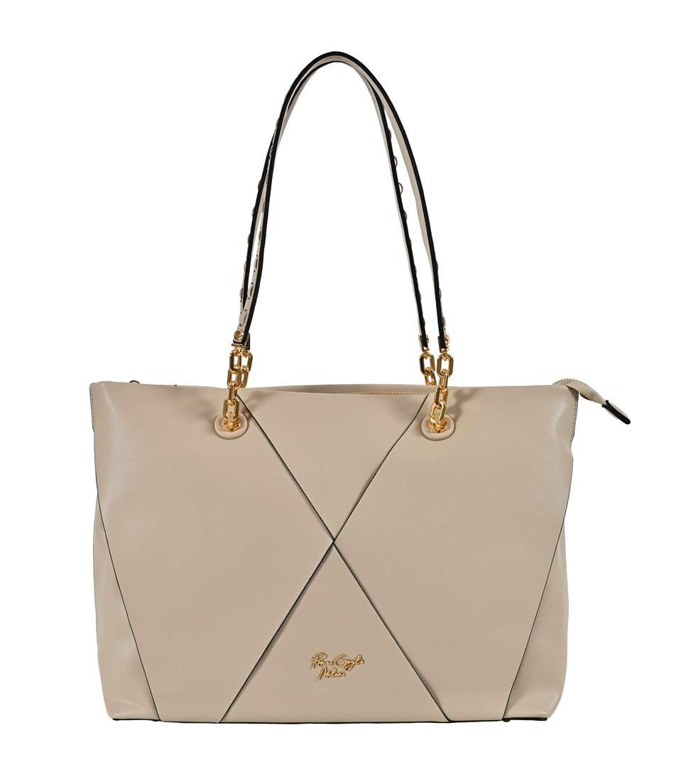 BORSA SHOPPING CON ACCESSORIO DORATO FRONTALE. FODERA INTERNA IN COTONE CON TASCA