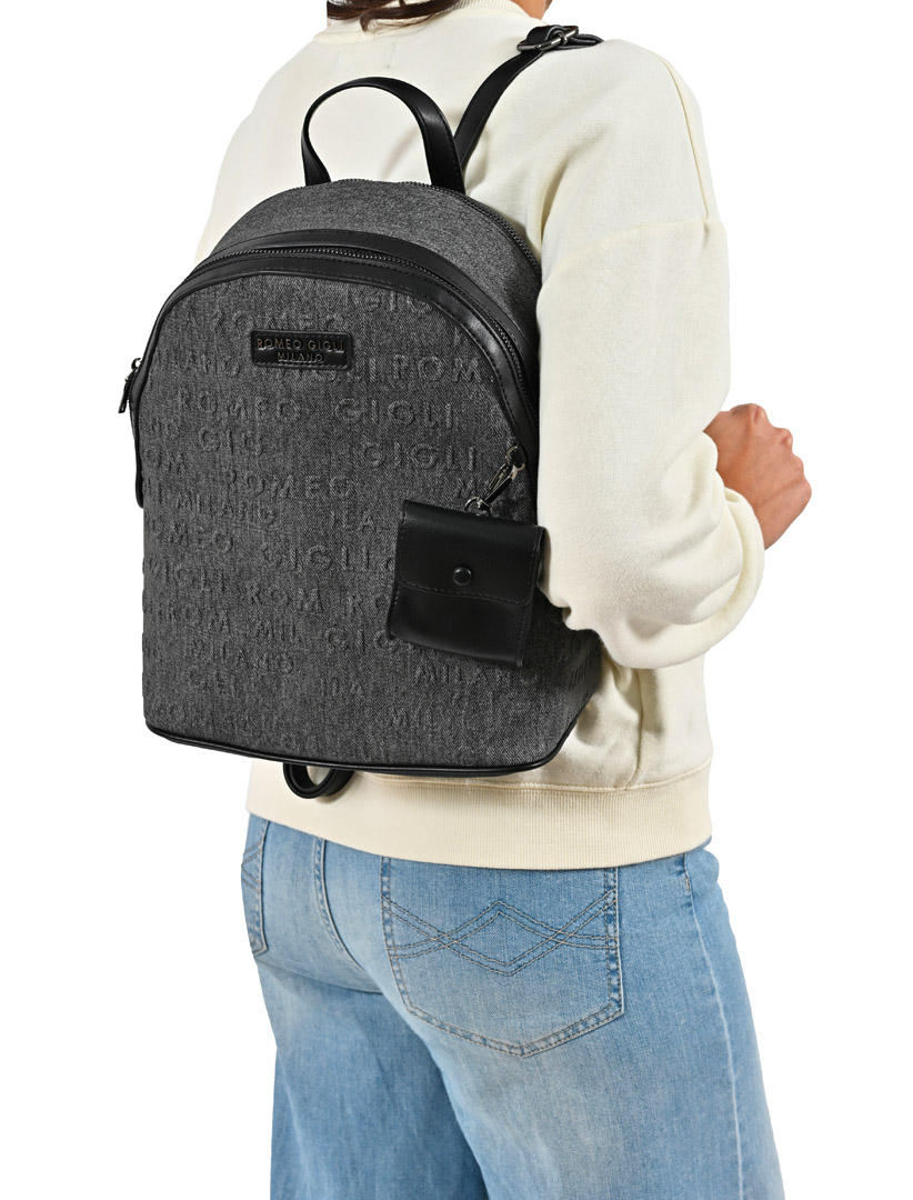 ZAINO LOGATO TONO SU TONO CON DETTAGLIO ACCESSORIO PORTA MONETE REMOVIBILE. FODERA INTERNA IN COTONE CON TASCA.